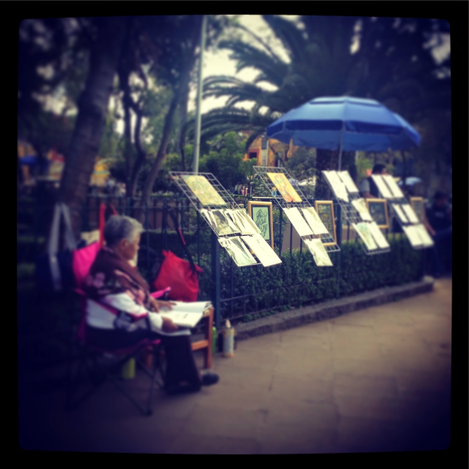 A mi puestito del Jardín del Arte en El Carmen llegó mi mamá (la Ofe) y me dió mucho gusto que me acompañara. Parece que me trae suerte porque estuvo muy movido mi sábado. Llegó una pareja brasileña y una chica japonesa que por más intentos que hizo con mi mamá de comunicarse nomás no pudieron (y la Ofe dice que la chica lo intentó pero se me apanicó porque no estaba yo en ese momento)